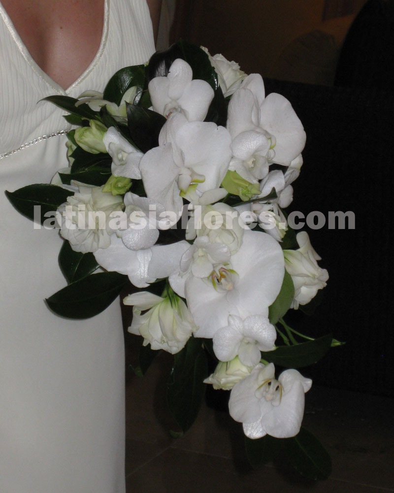 combination of dendroobium orchids, phaleanopsis orchids and lisianthus